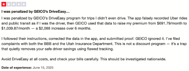 One frustrated Trustpilot user said their monthly premium increased from $691 to more than $1,000 after the app misclassified their transportation choices — even after contacting customer service.
