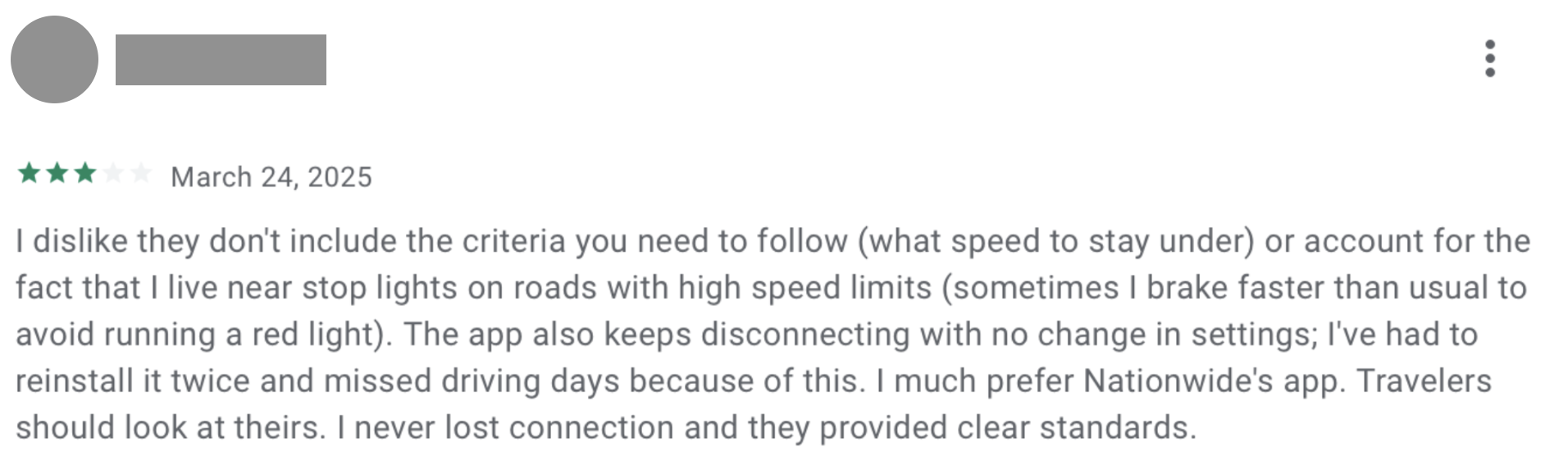 Below, you’ll find real reviews from customers with actual experiences using Travelers IntelliDrive.
