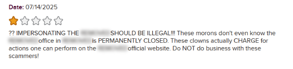 The site is inherently misleading, even though it has a disclaimer. Many reviewers on Trustpilot even seem to confuse DMV.org with their local DMV or office of motor vehicles (OMV) branch, as some people cite customer service complaints or positive experiences following DMV visits, like with the review below.