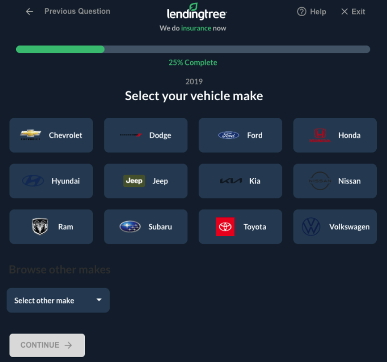 QuoteWizard, LendingTree’s proprietary insurance-comparison tool, claims to help users find the best auto insurance policy. It requires you to complete a questionnaire that asks for your personal information, vehicle information, driving history, and more.