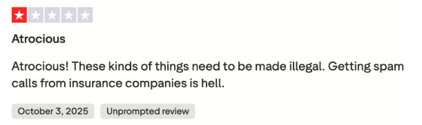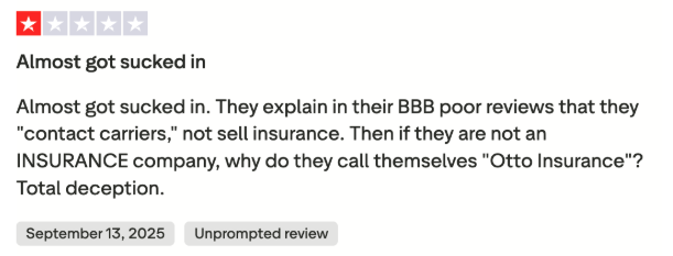 But customers have shared feedback about OTTO on review sites like Trustpilot and the Better Business Bureau (BBB). The company earns just 1.8 out of 5 stars from Trustpilot users and 1.44 stars with the BBB. Several reviewers report receiving many unexpected phone calls and texts from car insurance companies, though some report that the site helped reduce their insurance premiums.