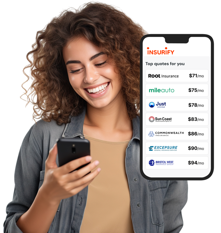 Los conductores que utilizan Insurify han encontrado cotizaciones tan baratas como $41/mes para solo responsabilidad y $64/mes para cobertura total.