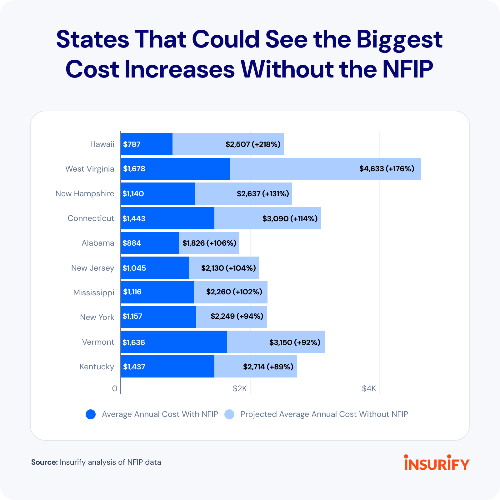 Nine in 10 Americans with flood insurance get their coverage through the heavily subsidized National Flood Insurance Program (NFIP). If the NFIP ends, Americans could see average flood insurance costs rise by about $600 annually.