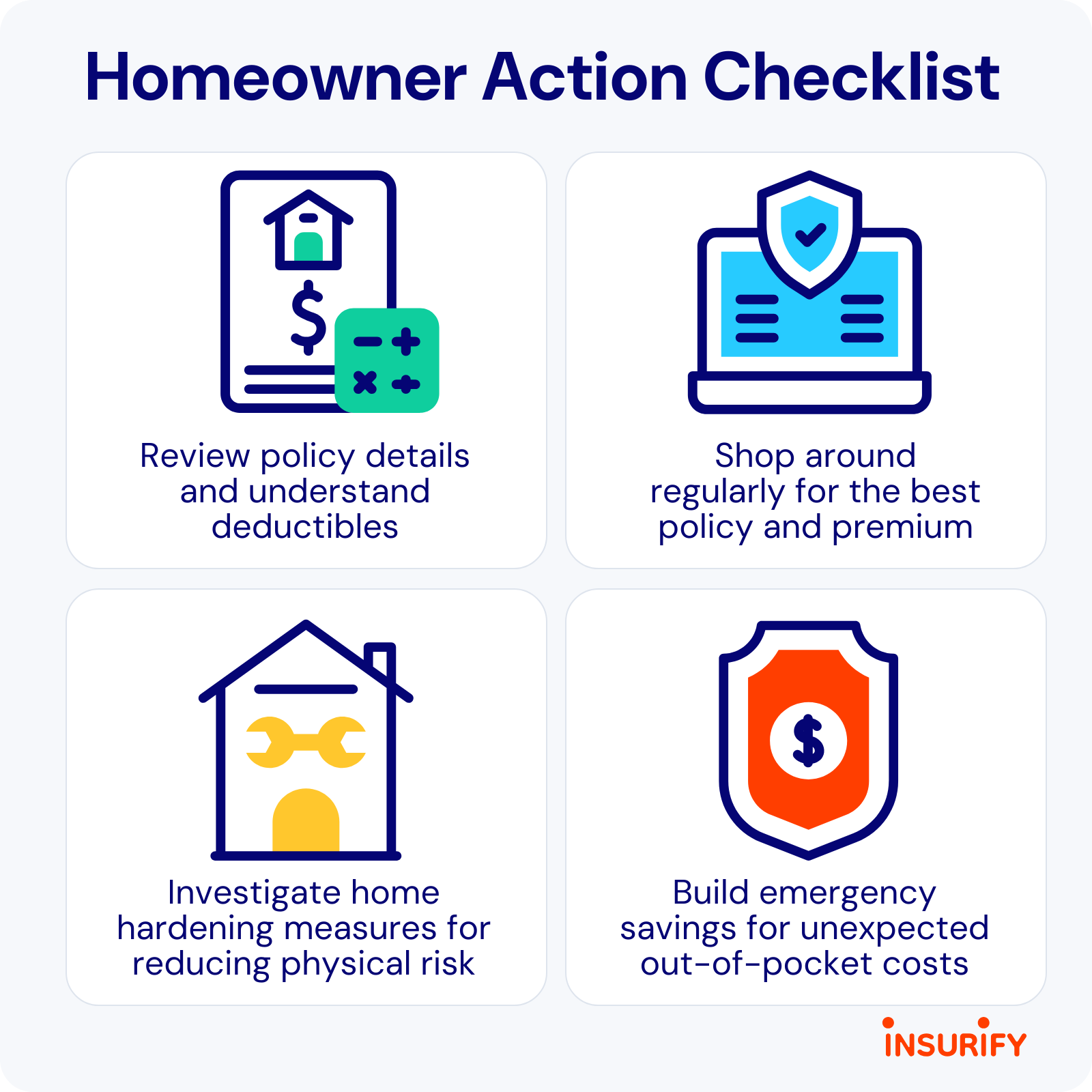 Reviewing coverage annually and shopping around if rates spike can help ensure homeowners have the coverage they need and pay the best rate for that coverage. And understanding which deductibles they could be on the hook for can help inform how much homeowners should save in the event of a claim.