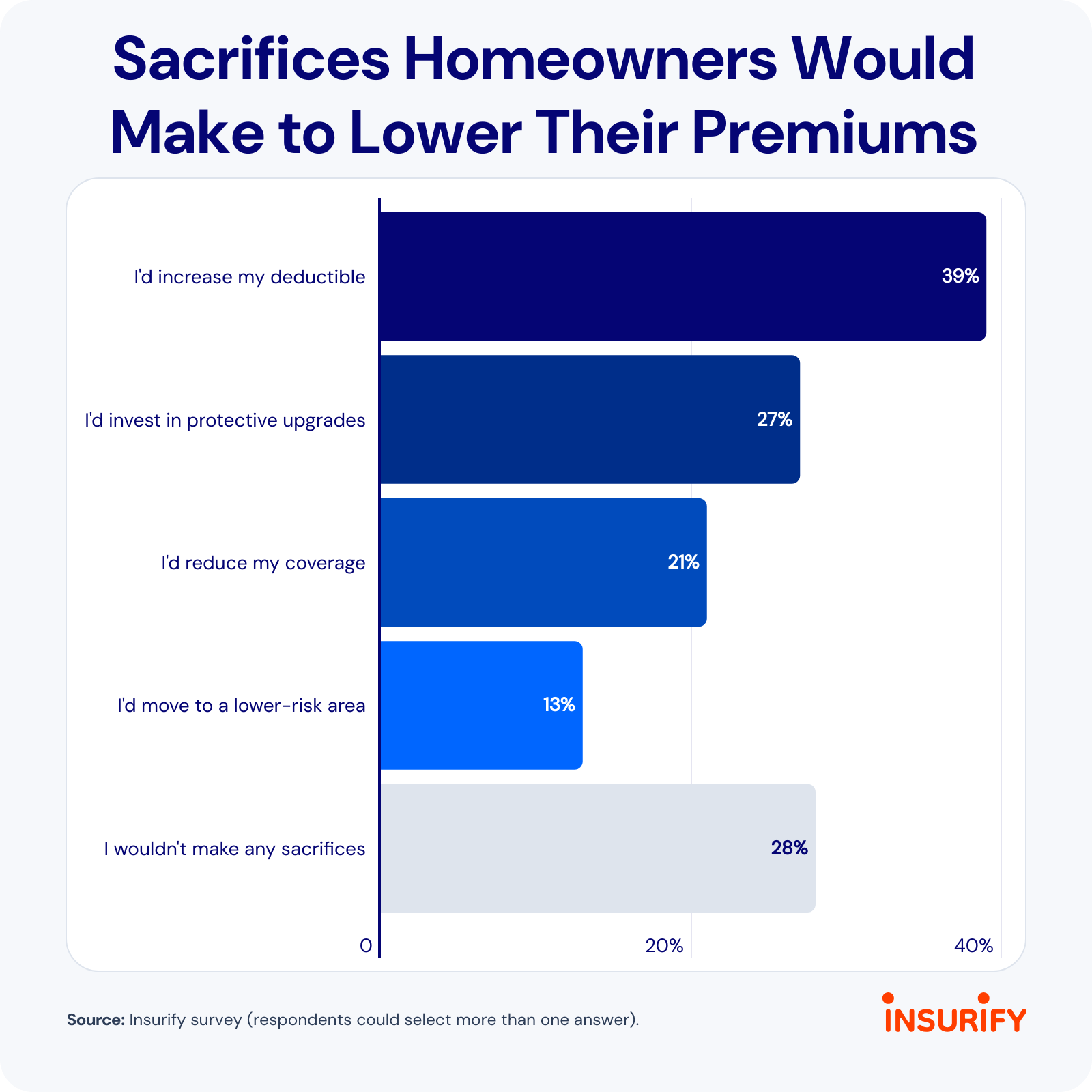 Now, 72% of surveyed homeowners would make some kind of sacrifice to lower their premiums, including taking on more financial risk.