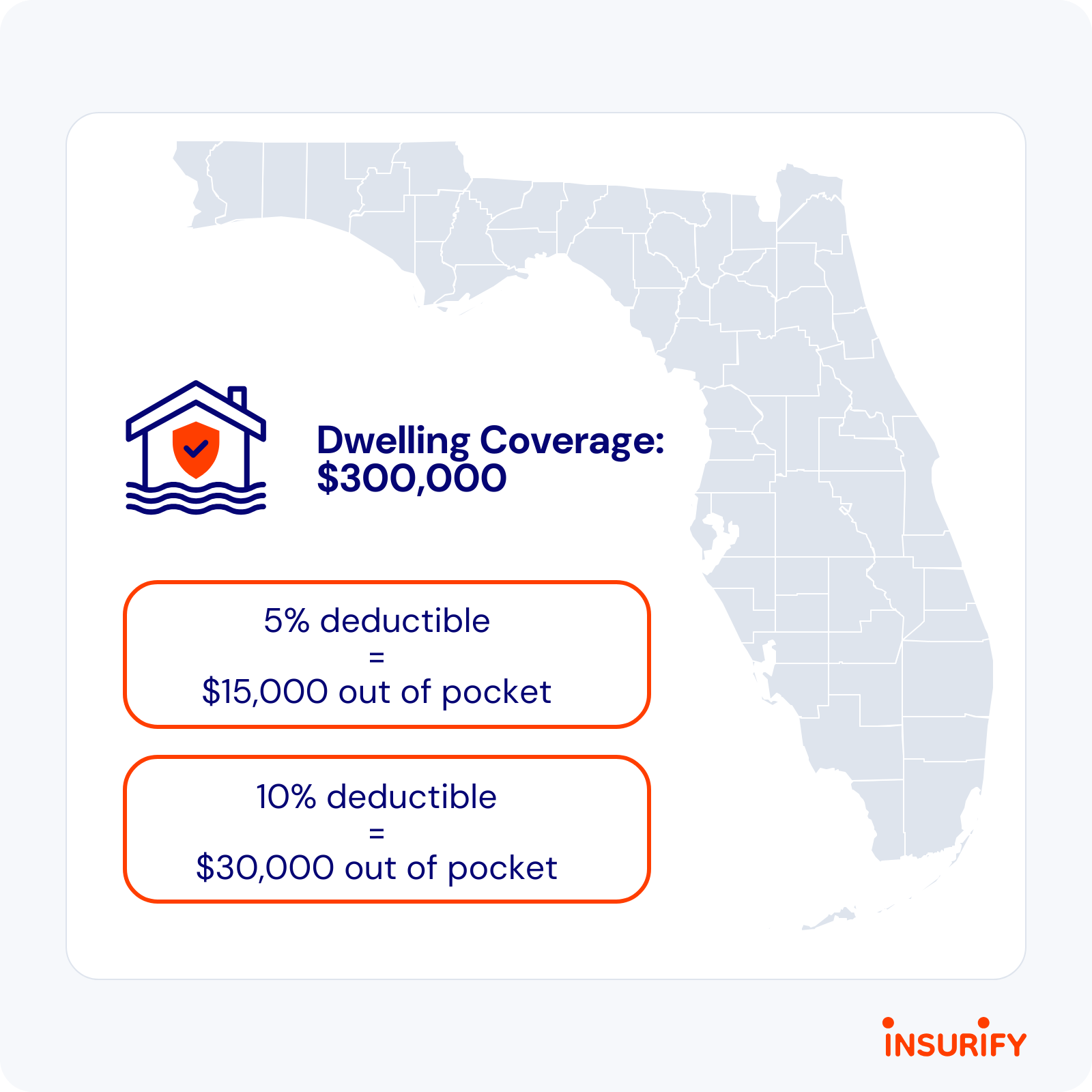 That means a Florida homeowner with $300,000 of dwelling coverage would have to pay $15,000 or $30,000 out of pocket for wind or hurricane damage before insurance began to cover costs.