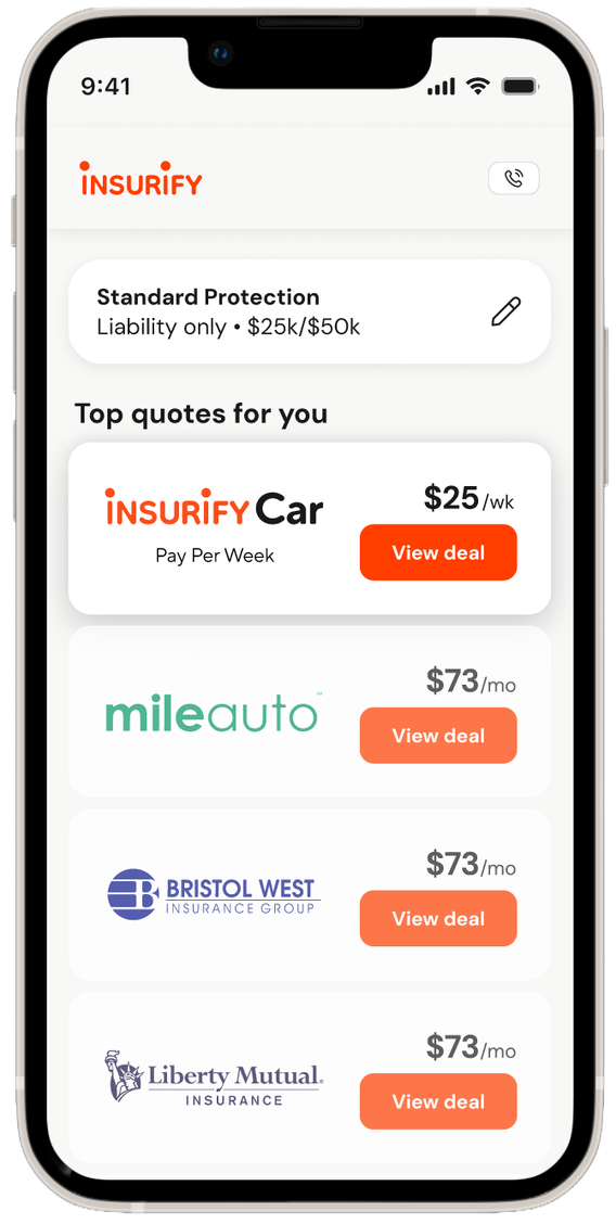 Insurify, a licensed digital insurance agent and the leading car insurance comparison platform, partners with top insurance companies to bring you Insurify Car. Applying is fast and simple. You get the essential coverage you need in minutes. Choose your cancellation date, or let your policy keep rolling from week to week. You can also use your phone number to log into your account at any time and set a cancellation date. No matter what you decide, you’ll only ever pay for seven days at a time.
