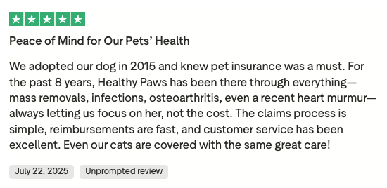 Both insurers have relatively high customer ratings on Trustpilot, but Pumpkin has an excellent rating of 4.8 out of 5 stars. Pumpkin pet parents reported positive customer service experiences, fast claims handling, and money saved.